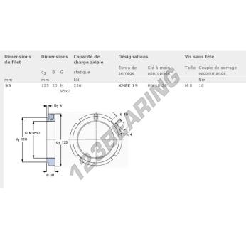 This lock nut KMFE19-SKF with an inside diameter of 95mm, an outside diameter of 125mm and a thickness of 20mm.