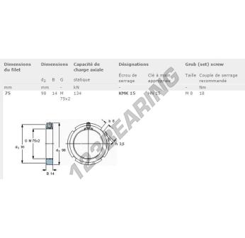 This lock nut KMK15-SKF with an inside diameter of 75mm, an outside diameter of 98mm and a thickness of 14mm.