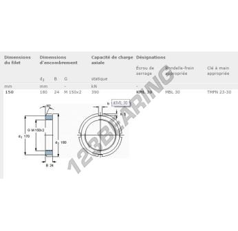 This lock nut KML30-SKF with an inside diameter of 150mm, an outside diameter of 180mm and a thickness of 24mm.