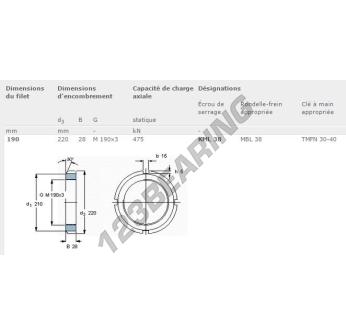 This lock nut KML38-SKF with an inside diameter of 190mm, an outside diameter of 220mm and a thickness of 28mm.