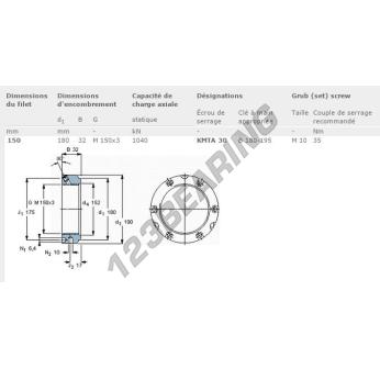 This lock nut KMTA30-SKF with an inside diameter of 150mm, an outside diameter of 180mm and a thickness of 32mm.