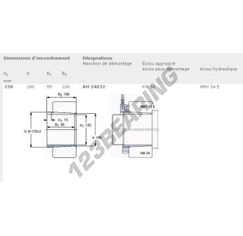 The Adapter Sleeve, known as AH24032-SKF SKF, has an inner diameter of 150 mm, an outer diameter of 160 mm and a thickness of 95 mm.