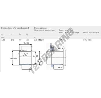 The Adapter Sleeve, known as AH24128-SKF SKF, has an inner diameter of 135 mm, an outer diameter of 140 mm and a thickness of 99 mm.