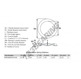 The Overlap Wave Spring Washer with the reference OWSW-22.22-15.75-0.3-3-SS has an inner diameter of 15.75 mm and a thickness of 0.3 mm. It is made of STAINLESS STEEL.