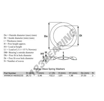 The Overlap Wave Spring Washer with the reference OWSW-37-28.720-0.460-3-SS has an inner diameter of 28.72 mm and a thickness of 0.46 mm. It is made of STAINLESS STEEL.