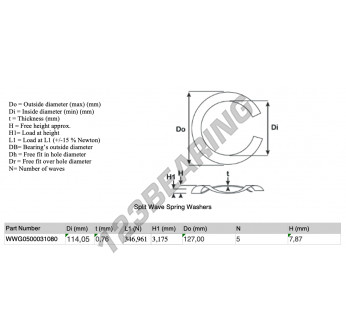 The Split Wave Spring Washer with the reference SWSW-127-114.05-0.76-5 has an inner diameter of 114.05 mm and a thickness of 0.76 mm. It is made of STEEL.