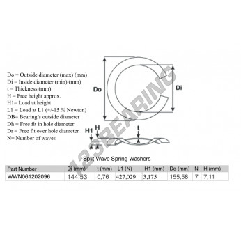 The Split Wave Spring Washer with the reference SWSW-155.58-144.53-0.76-7 has an inner diameter of 144.53 mm and a thickness of 0.76 mm. It is made of STEEL.