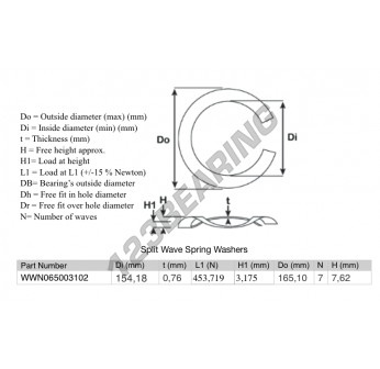 The Split Wave Spring Washer with the reference SWSW-165.10-154.18-0.76-7 has an inner diameter of 154.18 mm and a thickness of 0.76 mm. It is made of STEEL.