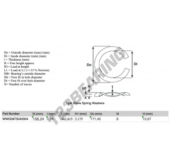 The Split Wave Spring Washer with the reference SWSW-171.45-158.24-0.76-6 has an inner diameter of 158.24 mm and a thickness of 0.76 mm. It is made of STEEL.