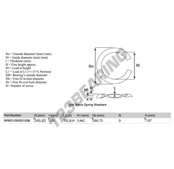 The Split Wave Spring Washer with the reference SWSW-266.70-245.62-0.81-9 has an inner diameter of 245.62 mm and a thickness of 0.81 mm. It is made of STEEL.