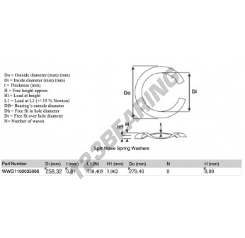 The Split Wave Spring Washer with the reference SWSW-279.40-258.32-0.81-9 has an inner diameter of 258.32 mm and a thickness of 0.81 mm. It is made of STEEL.