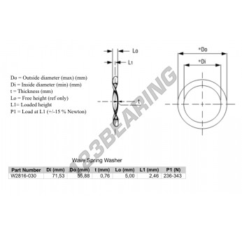 The Wave Spring Washer with the reference WSW-71.53-55.88-0.76 has an inner diameter of 55.88 mm and a thickness of 0.76 mm. It is made of STEEL.