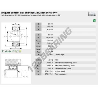 The Deep Groove Ball Bearing, known as 3212-BD-2HRS-TVH-FAG FAG, has an inner diameter of 60 mm, an outer diameter of 110 mm and a thickness of 36.5 mm.