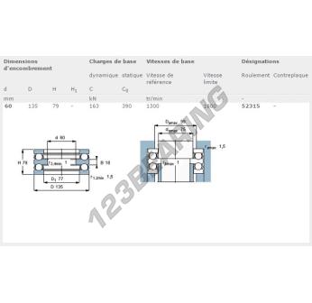 The Thrust Ball Bearing, known as 52315-SKF SKF, has an inner diameter of 60 mm, an outer diameter of 135 mm and a thickness of 79 mm.