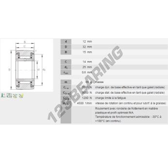 The Track Roller, known as NATR12-PP-INA INA, has an inner diameter of 12 mm, an outer diameter of 32 mm and a thickness of 15 mm.