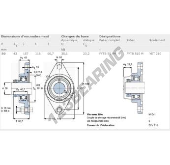 The Housed Bearing - 2 Bolts known as FYTB50-FM-SKF SKF has a shaft diameter of 50 mm and a fixing spacing of 157 mm. This part number is produced in cast iron and the tightening type is .