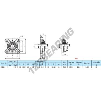 The Housed Bearing - 4 Bolts known as UCF211-INOX Generic has a shaft diameter of 55 mm and a fixing spacing of 130 mm. This part number is produced in STAINLESS STEEL and the tightening type is .