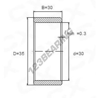 The Bearing Inner Race known by the reference IR30X35X30 Generic has an inside diameter of 30 mm, an outside diameter of 35 mm and a length of 30 mm. It is manufactured in .