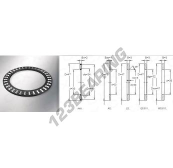 The Axial Needle Roller, known as FNTA-3047 Generic, has an inner diameter of 30 mm, an outer diameter of 47 mm and a thickness of 2 mm.