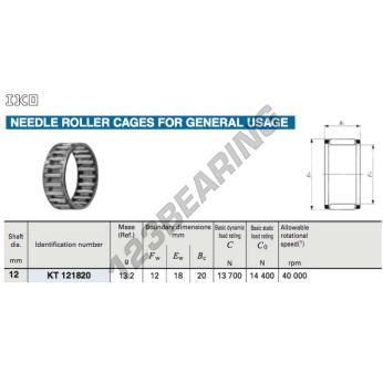 The Needle Roller And Cage Assemblies, known as KT121820C3-IKO IKO, has an inner diameter of 12 mm, an outer diameter of 18 mm and a thickness of 20 mm.