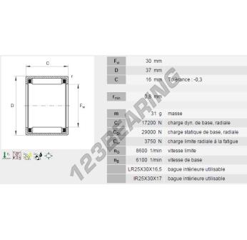 The Drawn Cup Needle Roller Bearing, known as HK3016-B-INA INA, has an inner diameter of 30 mm, an outer diameter of 37 mm and a thickness of 16 mm.
