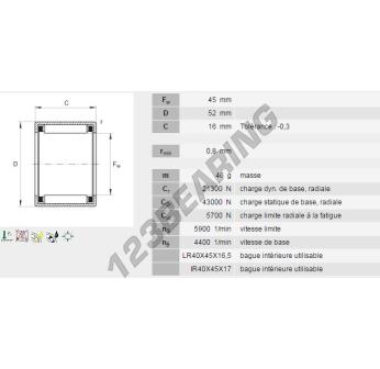 The Drawn Cup Needle Roller Bearing, known as HK4516-A-HLA-INA INA, has an inner diameter of 45 mm, an outer diameter of 52 mm and a thickness of 16 mm.