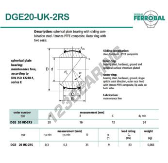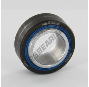 The Rod End Ge known as DGE20-UK-2RS-DURBAL DURBAL has an inside diameter of 20 mm, an outside diameter of 35 mm and a thickness of 16 mm.