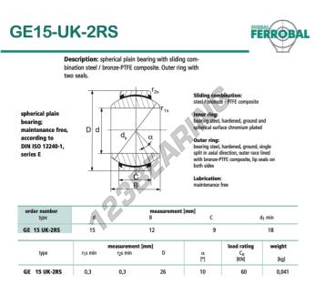 The Rod End Geew known as DGE15-UK-2RS-DURBAL DURBAL has an inside diameter of 15 mm, an outside diameter of 26 mm and a thickness of 9 mm.