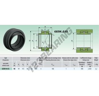 The Rod End Geew known as GEEW090-ES Generic has an inside diameter of 90 mm, an outside diameter of 130 mm and a thickness of 90 mm.