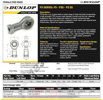 The Rod End Si known as FSL-M22-DUNLOP DUNLOP has an inside diameter of 22 mm, an outside diameter of 28 mm and a thickness of 20 mm.