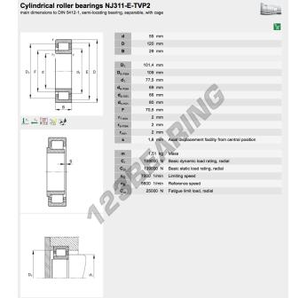 The Roller Bearing, known as NJ311-E-XL-TVP2-FAG FAG, has an inner diameter of 55 mm, an outer diameter of 120 mm and a thickness of 29 mm.