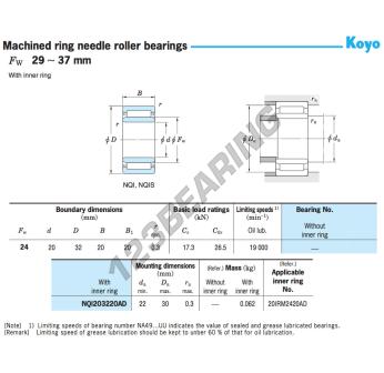 The Roller Bearing, known as NK24-20R-1R20X24X20-NTN NTN, has an inner diameter of 20 mm, an outer diameter of 32 mm and a thickness of 20 mm.