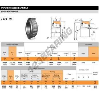 The Tapered Roller Bearing, known as 93825-93125-TIMKEN TIMKEN, has an inner diameter of 209.55 mm, an outer diameter of 317.5 mm and a thickness of 63.5 mm.