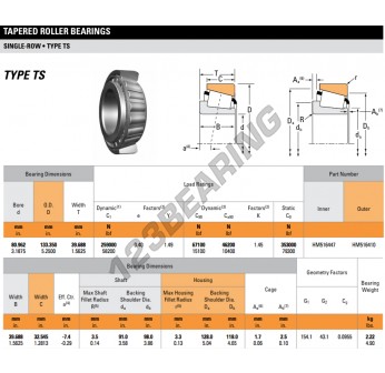 The Tapered Roller Bearing, known as HM516447-HM516410-TIMKEN TIMKEN, has an inner diameter of 80.962 mm, an outer diameter of 133.35 mm and a thickness of 39.688 mm.