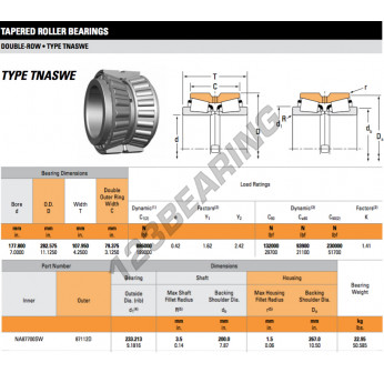 The Tapered Roller Bearing, known as NA87700SW-87112D-TIMKEN TIMKEN, has an inner diameter of 177.8 mm, an outer diameter of 282.575 mm and a thickness of 107.95 mm.