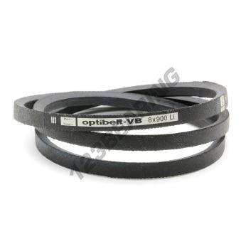 The 8X900-OPTIBELT belt of the V-belt Wrapped family, by brand OPTIBELT, and in 8 profile. It has a 8m x 5mm section with a 900 mm internal length, a 931 mm external length, and a mm primitive length.